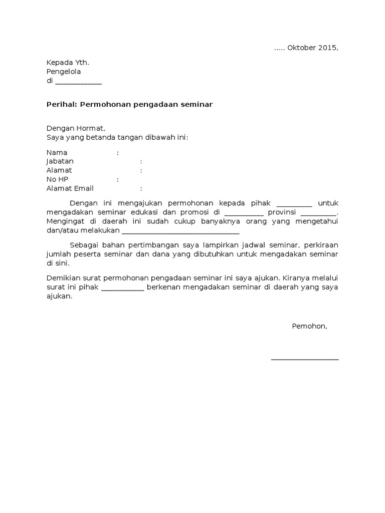 Contoh Surat Permohonan Pengadaan Seminar Pdf